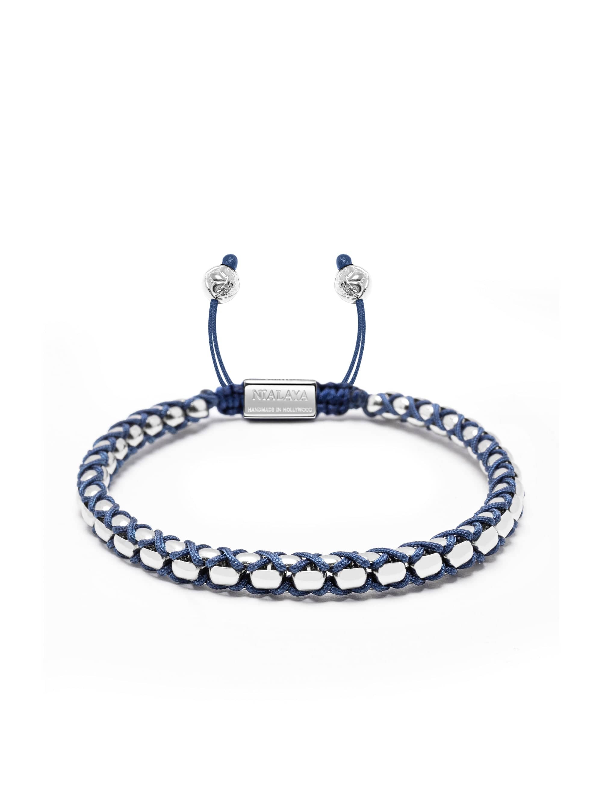 - Navy String Box Chain Bracelet in Silver