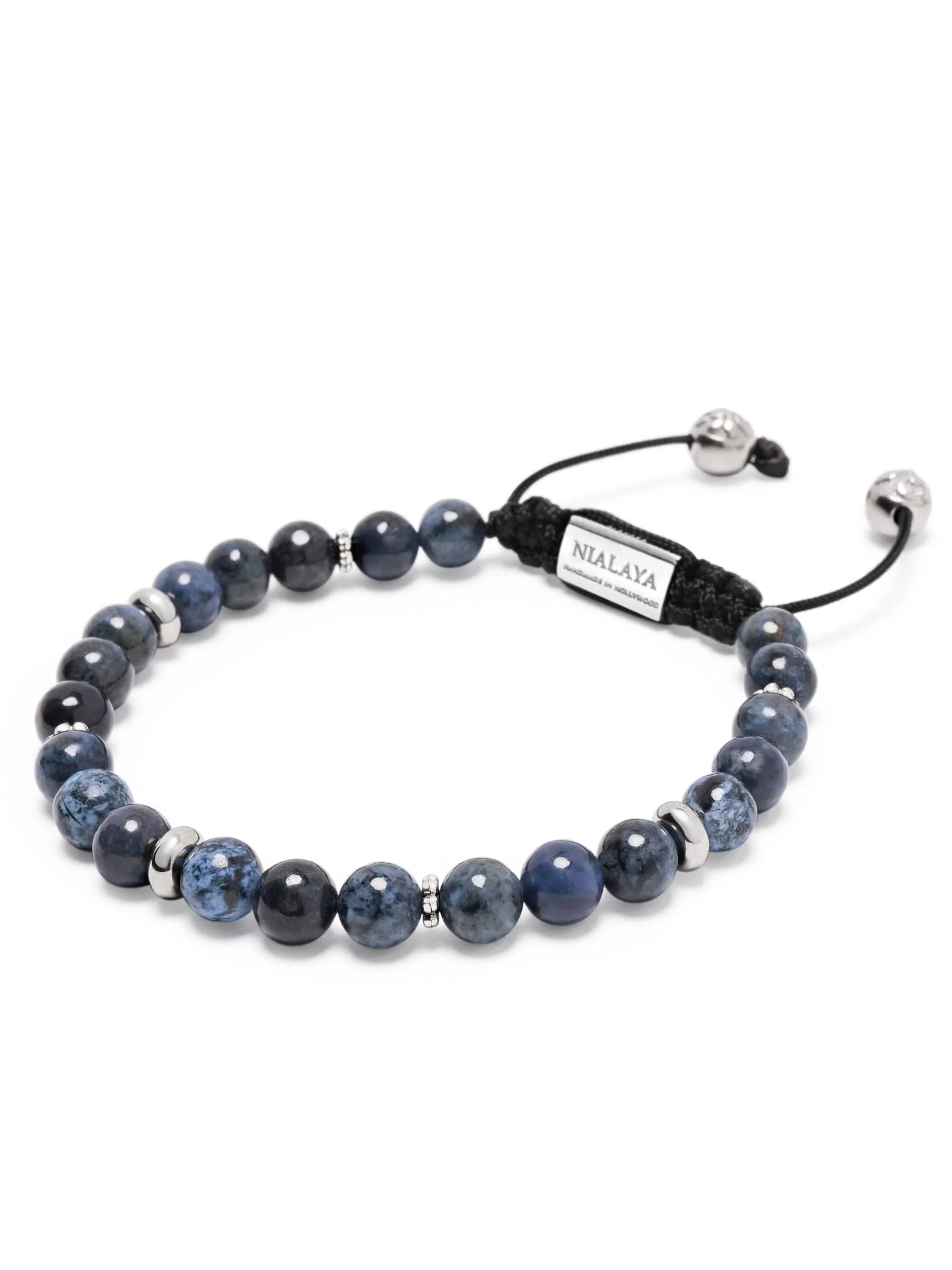 Men's Beaded Bracelet With Blue Dumortierite And Silver