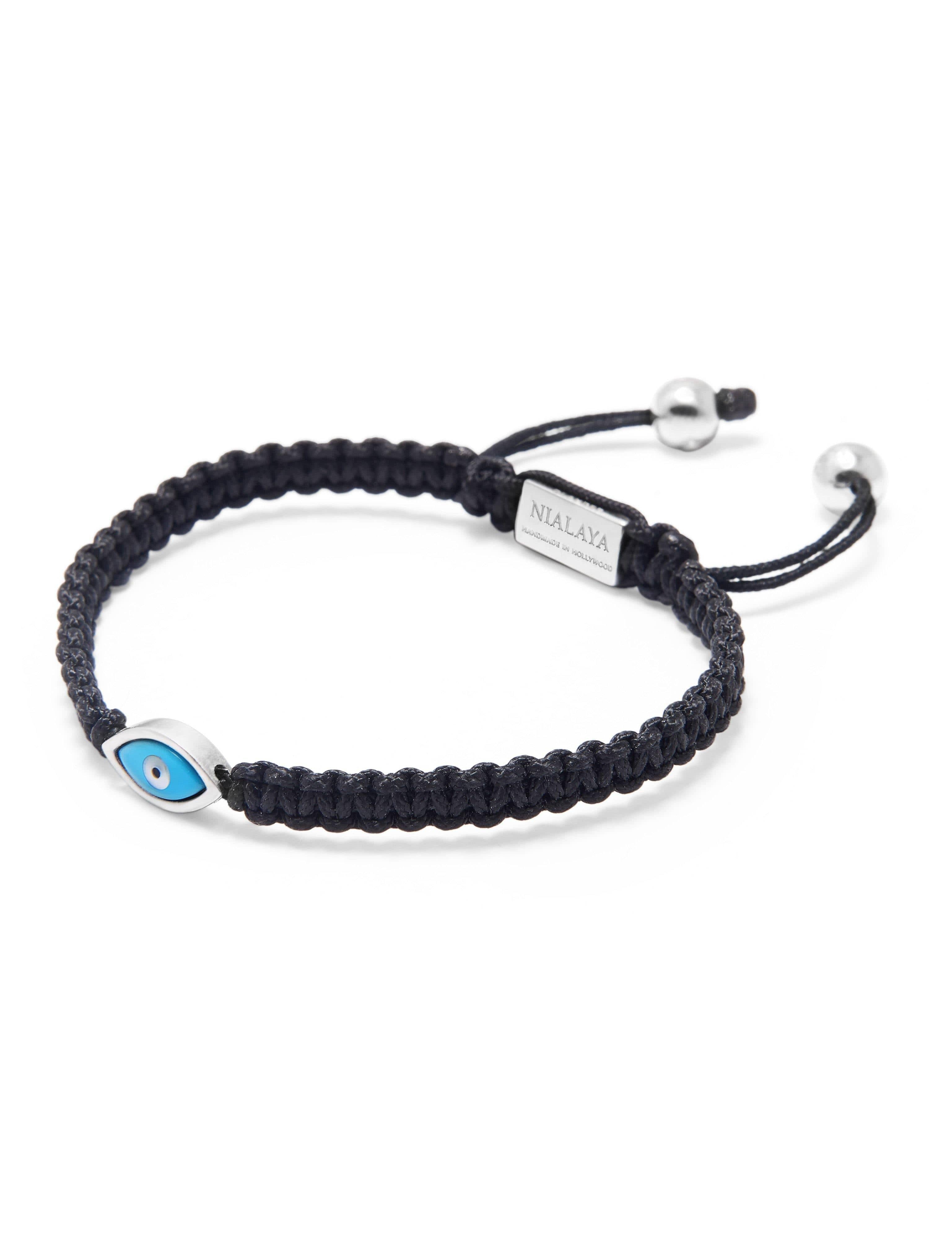 Men's Black String Bracelet with Silver Evil Eye