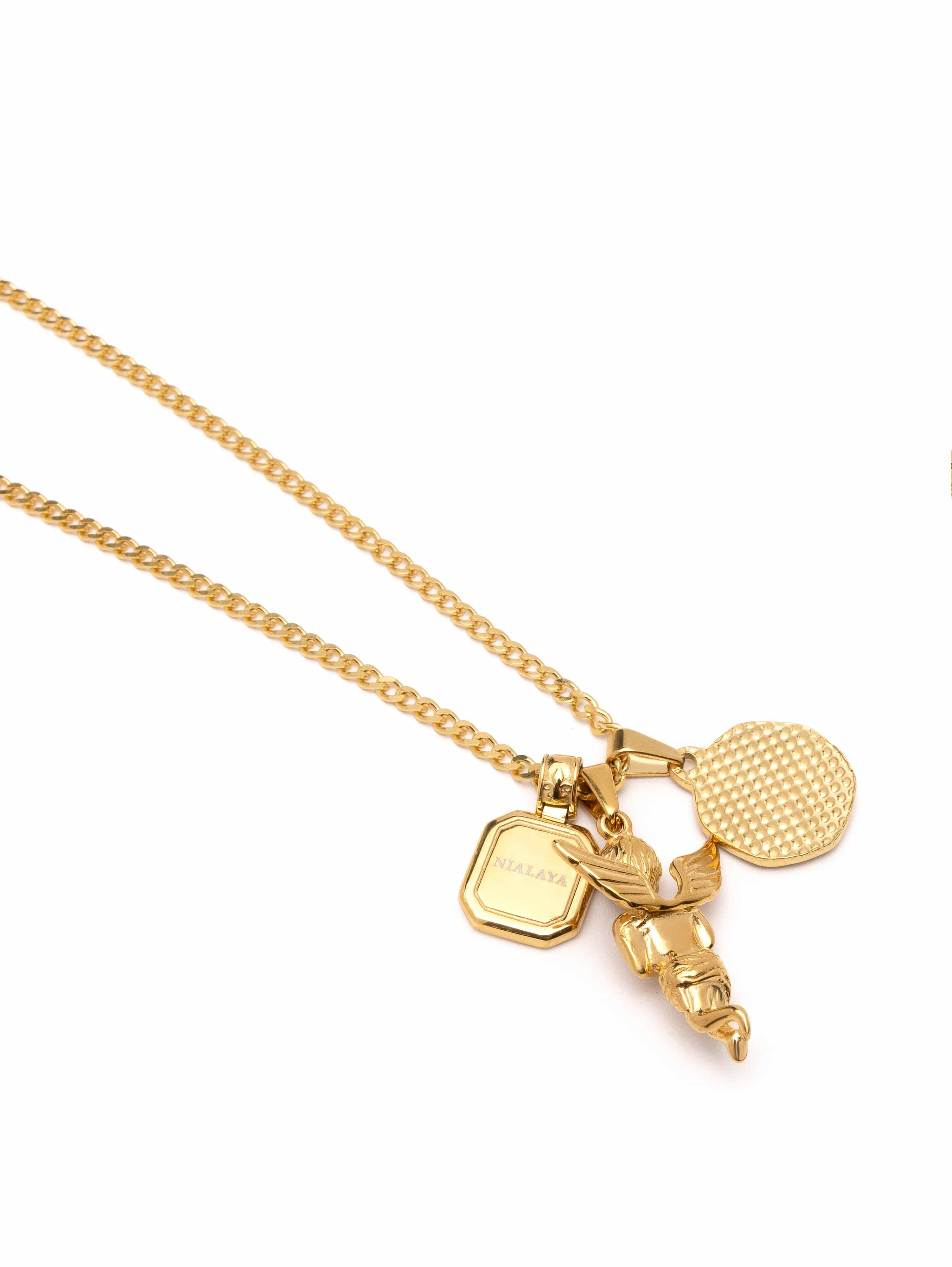 Men's Gold Talisman Necklace with Angel and Malachite Pendant