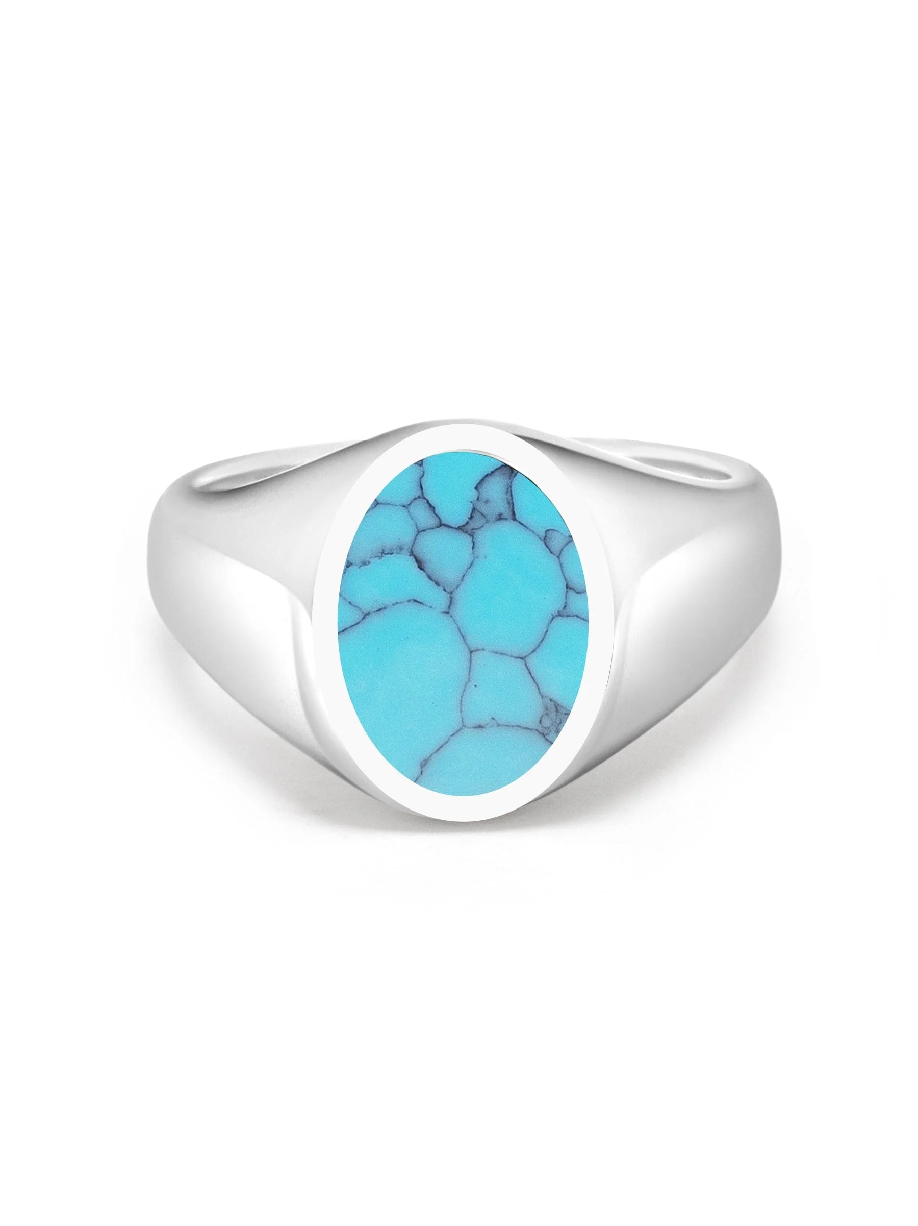 Introducing our distinguished men's sterling silver oval signet ring with turquoise, a bold statement of refined style and sophistication. Crafted from high-quality sterling silver, this ring features a classic oval signet design, exuding timeless elegance.