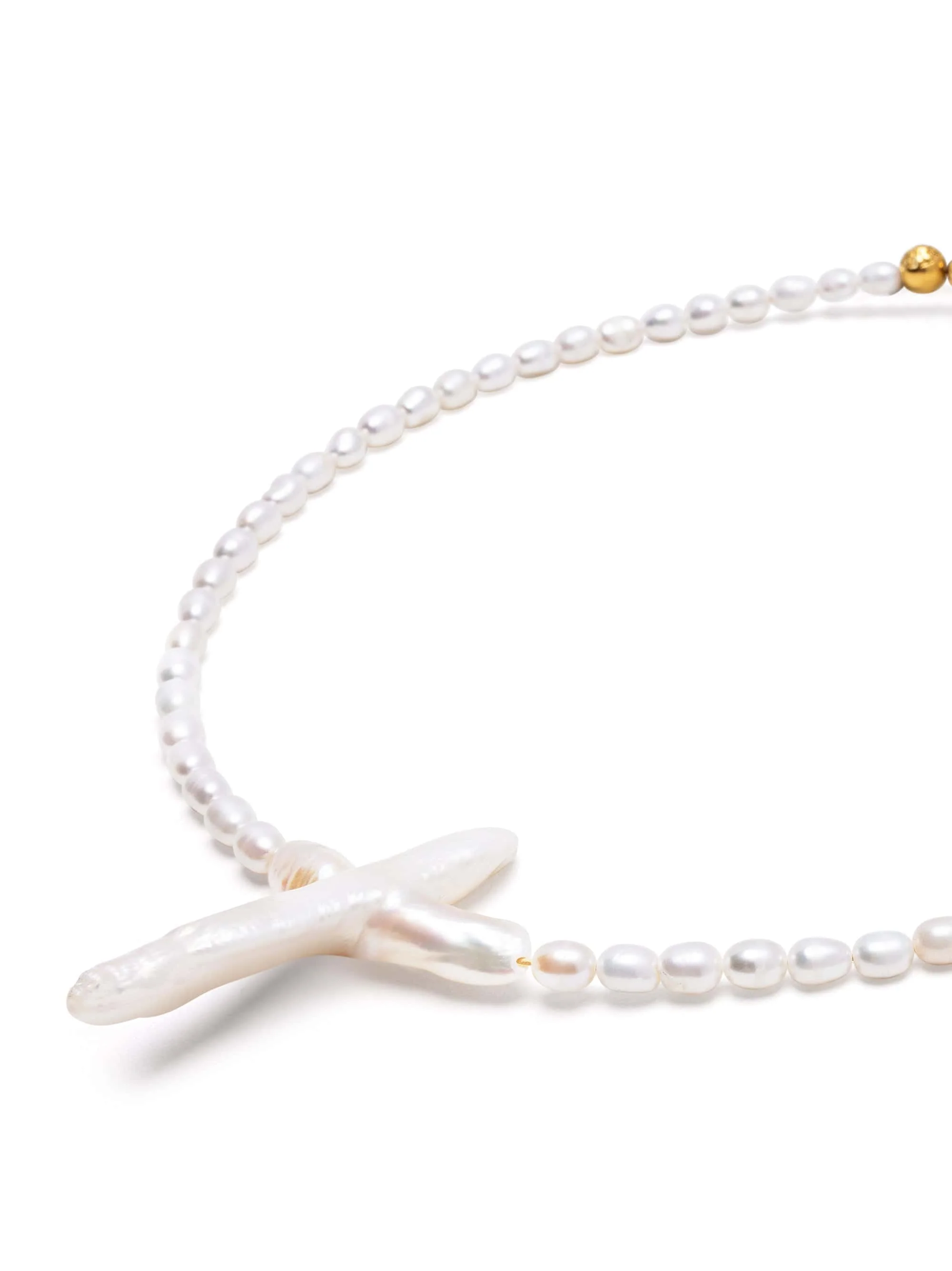 - Featuring a unique natural pearl formed in the shape of a cross as the centerpiece