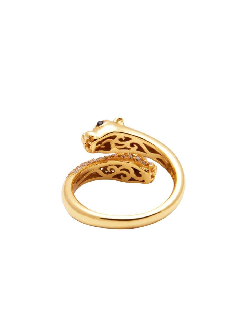Rendered in 925 solid silver with gold plating this unique piece wraps around your finger beautifully. The one CZ diamond covered panther head adds personality to the piece. Wear it every day as a striking statement.