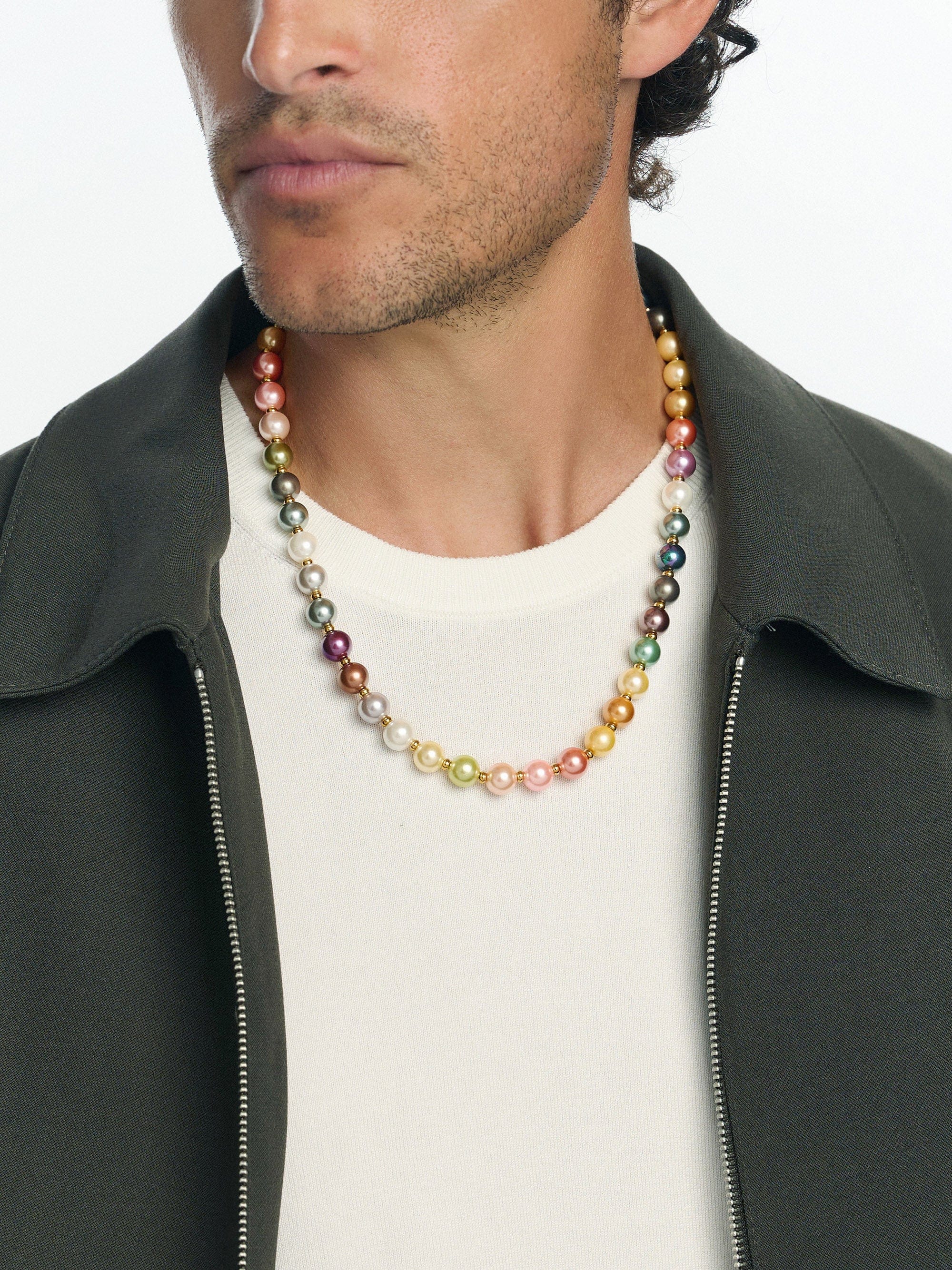 Strung by hand on a strong metal wire in our LA studio, this necklace with beautiful 10mm pearls will add a unique touch to all your looks. The Rainbow colors of the pearls give a unique touch to your look. Wear this stunning piece solo or layered.