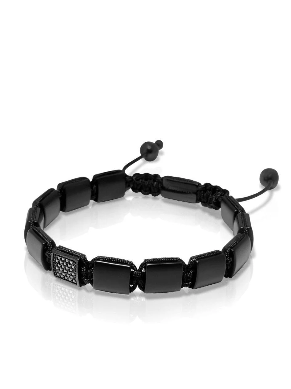 Simple but with a unique touch, this matte onyx flat beaded bracelet is adorned with a striking black CZ diamond bead. Crafted by hand in our Los Angeles studio with meticulous attention to detail, this piece will complete all your casual as well as suited looks!