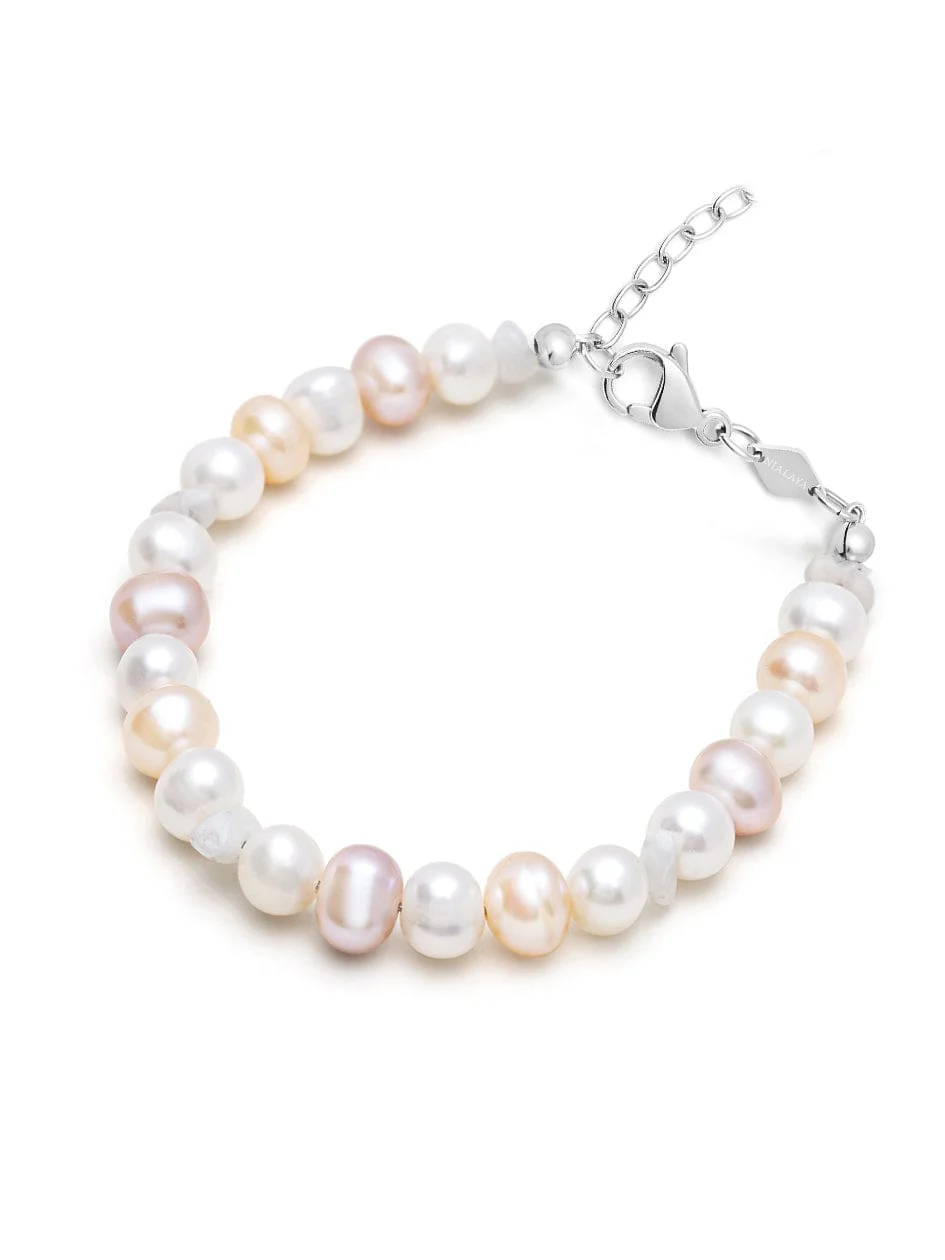 Inspired by the serene beauty of Mother Nature's waters, this delicate women's beaded bracelet has been hand-crafted in our Los Angeles studio with meticulous attention to detail. White and pastel freshwater pearls create the perfect piece to add to your everyday style.